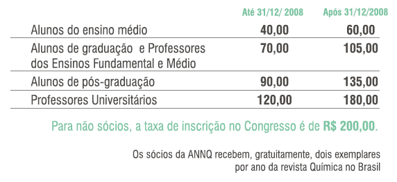 Os depóstios devem ser feitos na conta: Banco do Brasil Ao efetuar o depósito, a pessoa deve enviar um e-mail para: annq@annq.org informando seu nome completo e endereço para correspondência. No caso de já ser sócio da ANNQ, informar o nome e/ou nº de associado. Os resumos podem ser enviados até 08/03/2009.